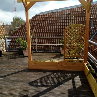 In June I created this edible balcony for shade, near Humboldthain. Here's a before and after: